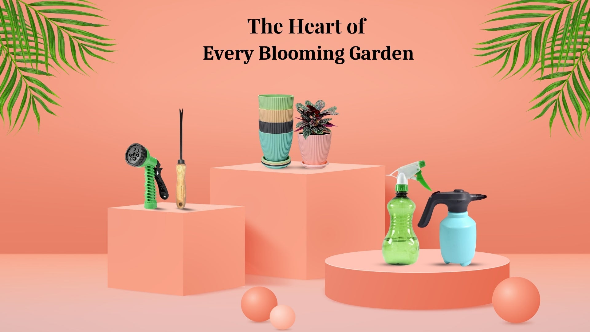 Plastic Flower Pot with Bottom Tray (5 Pcs Set)